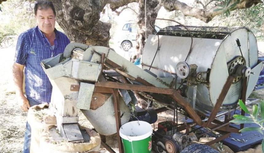 «Έκανα μια σκέψη κάποια μέρα, να φτιάξω ένα μηχάνημα που να “ξεφυλλίζει” τις ραβδισμένες ελιές και να τις ξεχωρίζει από τα φύλλα, ώστε να μπαίνουν καθαρές μέσα στα τσουβάλια πριν τα μεταφέρω στο ελαιουργείο. Έτσι δε χάνω καμία ελιά και γλιτώνω τα εργατικά χέρια που απαιτούνται για να κοσκινίσω τις ελιές στην κλασική κοσκινίστρα.]