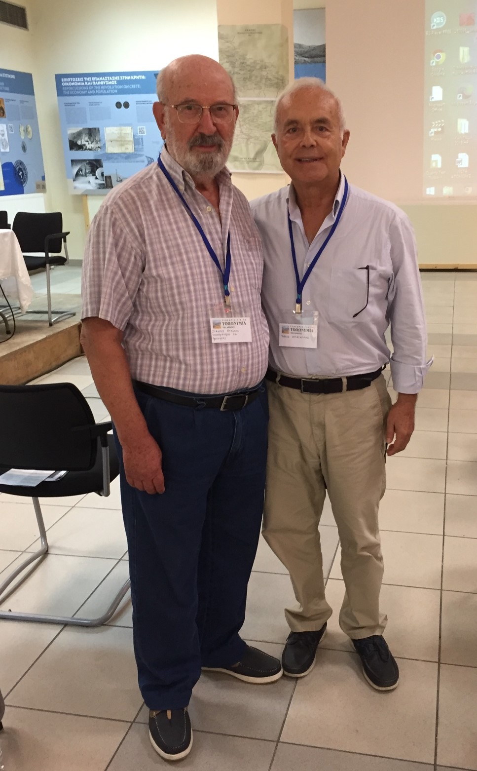 Ευχαριστώ θερμά τον αγαπητό Πρόεδρο του Κέντρου Κρητικής Λογοτεχνίας Κώστα Μουτζούρη και όλα τα μέλη του Δ.Σ, καθώς και τα μέλη της Οργανωτικής Επιτροπής, που αποδεχτήκανε την συμμετοχή μου στο Συνέδριο για τα τοπωνύμια της Κρήτης. Ευχαριστίες επίσης το Δήμο Ανωγείων για την κρητική φιλοξενία. Και η έκπληξη ήρθε από το Προεδρείο του Συνεδρίου που με προσκάλεσε στο βήμα ο Ανωγειανός επιστήμονας και επιχειρηματίας, αγωνιστής της Δημοκρατίας Τάσος Μπαγκέρης, με τον οποίο είχαμε να συναντηθούμε επί 52 χρόνια.