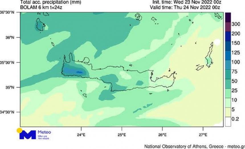 Σημαντικές βροχοπτώσεις αναμένονται στην Κρήτη σήμερα Τετάρτη 23/11, λόγω της διέλευσης ψυχρού μετώπου από την περιοχή του Αιγαίου και της Κρήτης.