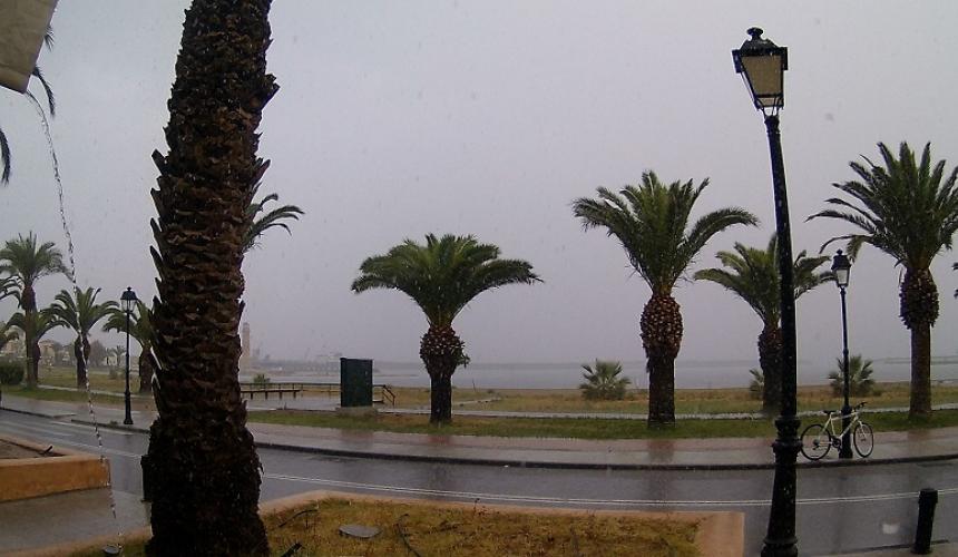 Το μέτωπο της κακοκαιρίας, με κύρια χαρακτηριστικά τις βροχές, τις καταιγίδες, την σημαντική πιθανότητα τοπικών χαλαζοπτώσεων και τους ισχυρούς νότιους ανέμους, θα διέλθει γρήγορα από το νησί και τις απογευματινές και βραδινές ώρες θα μετακινηθεί ανατολικότερα.