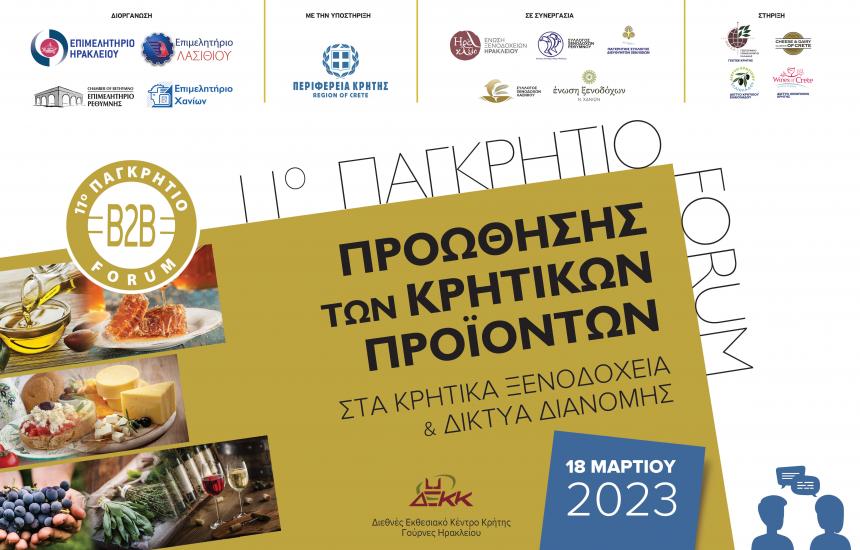 Με εξαιρετικό ενδιαφέρον πραγματοποιείται το προσεχές Σάββατο 18 Μαρτίου το ΠΑΓΚΡΗΤΙΟ ΦΟΡΟΥΜ ΠΡΟΩΘΗΣΗΣ ΚΡΗΤΙΚΩΝ ΠΡΟΪΟΝΤΩΝ ΣΤΑ ΚΡΗΤΙΚΑ ΞΕΝΟΔΟΧΕΙΑ ΚΑΙ ΤΑ ΔΙΚΤΥΑ ΔΙΑΝΟΜΗΣ - SUPER MARKET στο Διεθνές Εκθεσιακό Κέντρο Κρήτης (ΔΕΚΚ), επιβεβαιώνοντας για άλλη μια χρονιά τη σπουδαιότητα του θεσμού που δίνει νέα προοπτική στα προϊόντα της Κρήτης.