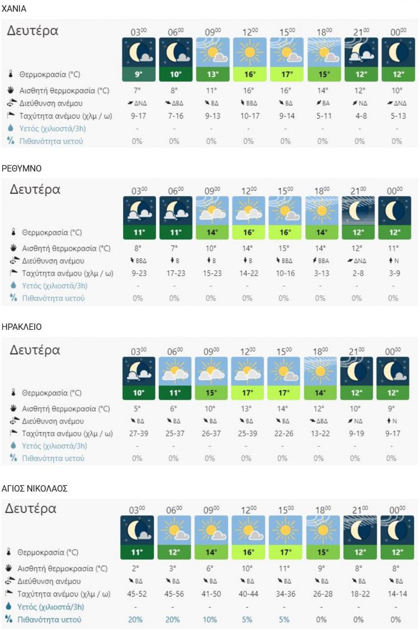 Στην Κρήτη λίγες νεφώσεις, που τις πρωινές ώρες θα είναι τοπικά αυξημένες και είναι πιθανό να σημειωθούν πρόσκαιρες ασθενείς βροχές.