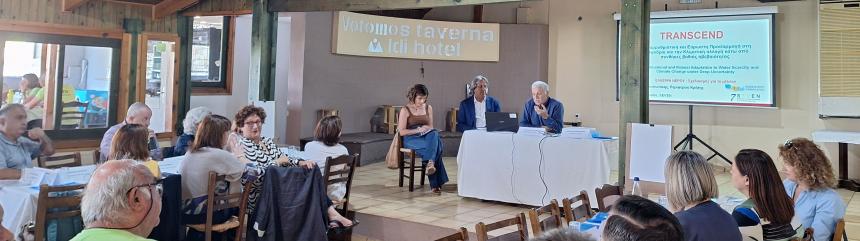 Με επιτυχία ολοκληρώθηκε στον Ζαρό, η 1η Συνάντηση Εργασίας (1st Workshop) του Ευρωπαϊκού Έργου TRANSCEND «Transformational and Robust AdaptatioN to water Scarcity and ClimatE chaNge under Deep uncertainty - Δυναμική Προσαρμογή στη λειψυδρία και στην κλιματική αλλαγή υπό συνθήκες βαθιάς αβεβαιότητας», του χρηματοδοτικού πλαισίου HORIZON EUROPE, στο οποίο η Περιφέρεια Κρήτης συμμετέχει ως εταίρος. Επίκαιρο όσο ποτέ, το νέο αυτό πρόγραμμα επιχειρεί να καθορίσει και να προωθήσει την υιοθέτηση Μεταρρυθμιστικών Πολιτικών Προσαρμογής (ΜΠΠ) στη λειψυδρία - συμπεριλαμβανομένων καινοτόμων συστημάτων κατανομής και οικονομικών μέσων - που είναι ανθεκτικές και προσαρμόσιμες στην αβεβαιότητα και την αλλαγή, ενώ ταυτόχρονα επιτυγχάνουν δίκαιη και βιώσιμη οικονομική ανάπτυξη και ευημερία.