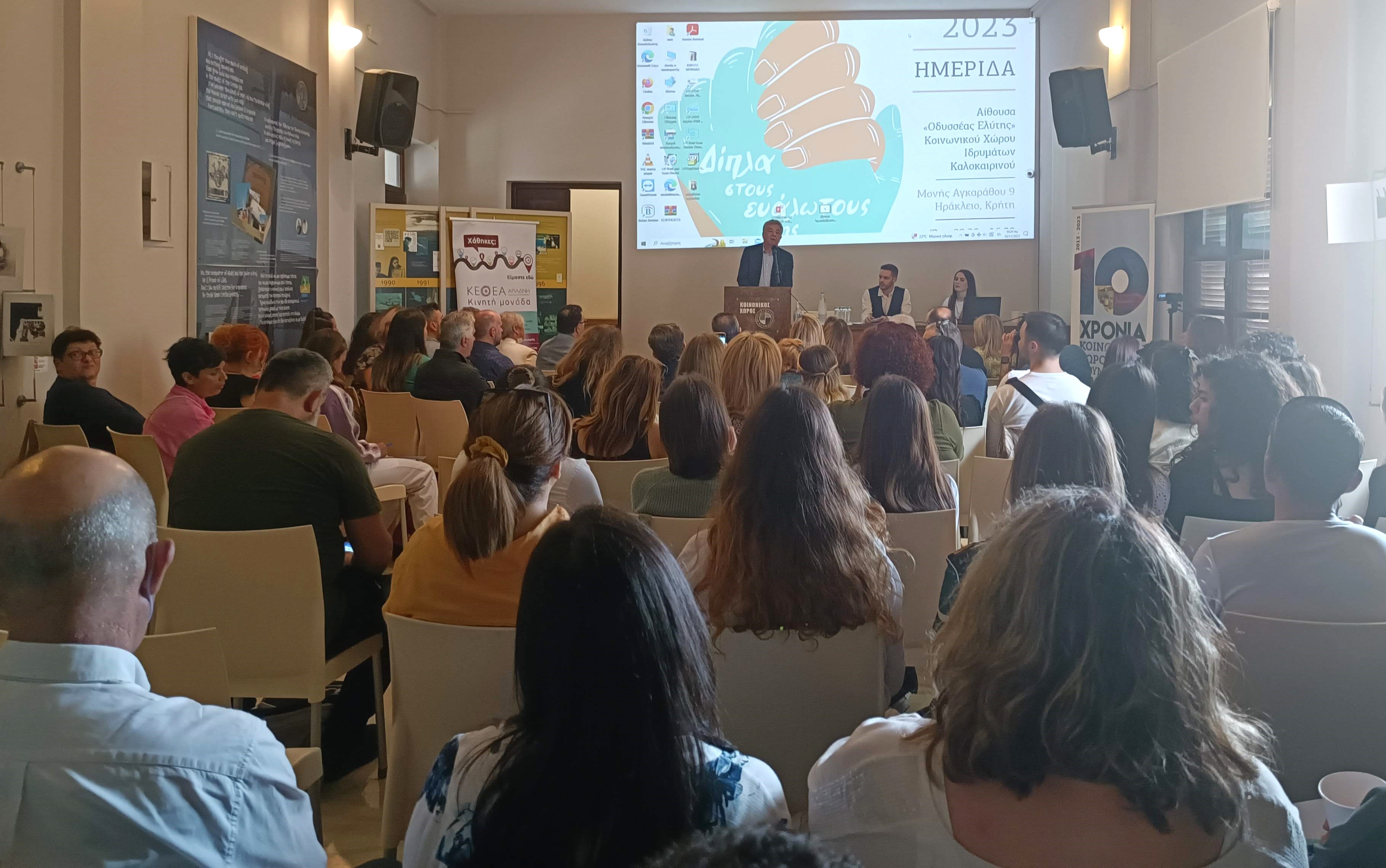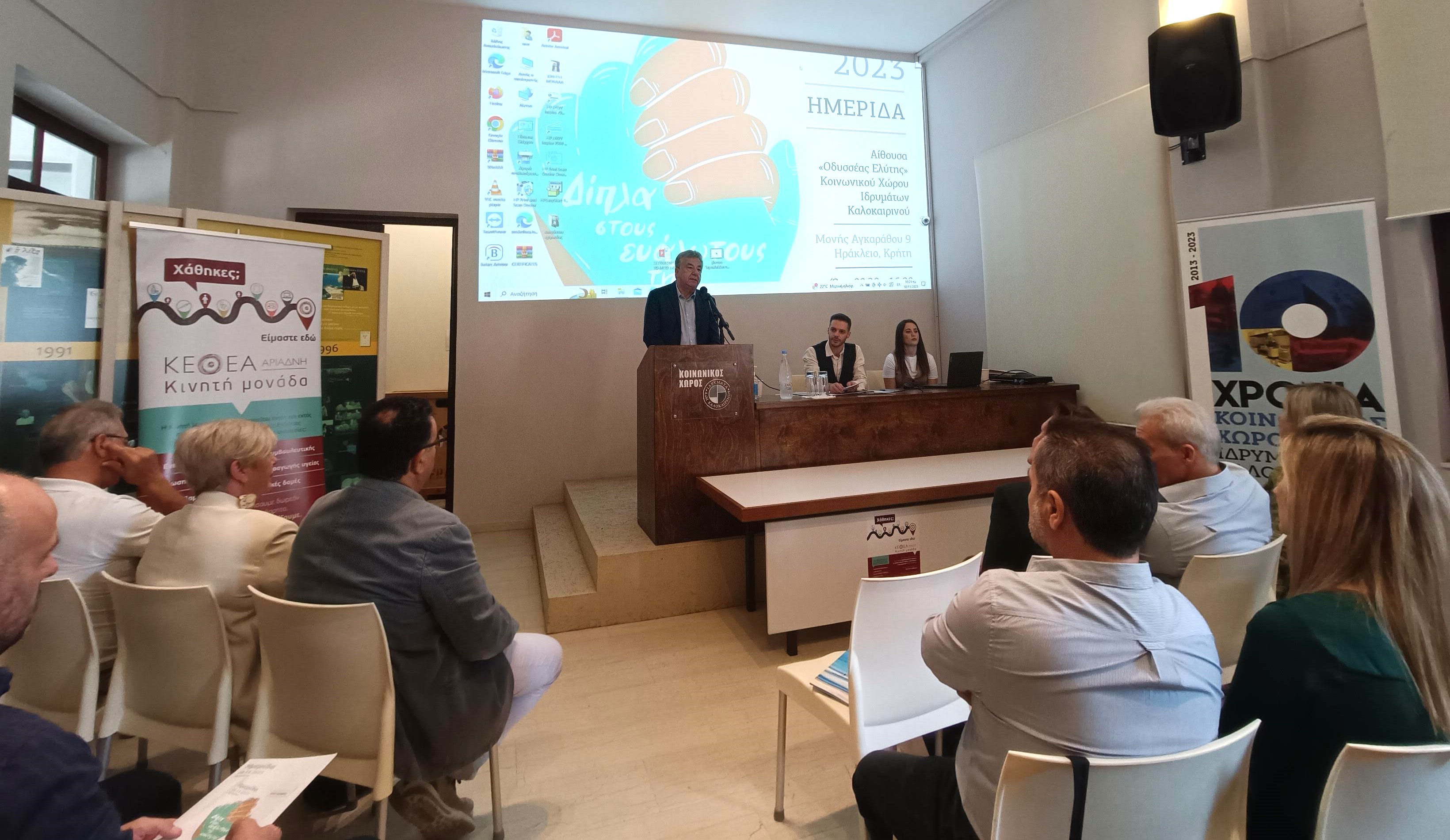 Στην ημερίδα που πραγματοποιήθηκε στον κοινωνικό χώρο των Ιδρυμάτων Καλοκαιρινού στο Ηράκλειο, με αφορμή τα 2 χρόνια λειτουργίας της Κινητής Μονάδας Περιφέρειας Κρήτης του ΚΕΘΕΑ ΑΡΙΑΔΝΗ, παραβρέθηκαν και συμμετείχαν ο βουλευτής Ηρακλείου Μανόλης Συντιχάκης, ο νεοκλεγμένος Δήμαρχος Ηρακλείου Αλέξης Καλοκαιρινός, η Αντιδήμαρχος Ηρακλείου Ρένα Παπαδάκη που εκπροσώπησε τον Δήμαρχο Ηρακλείου Βασίλη Λαμπρινό, η Περιφερειακή Σύμβουλος Γωγώ Μηλάκη, εκπρόσωποι κοινωνικών φορέων, εμπλεκόμενων υπηρεσιών και πολίτες.