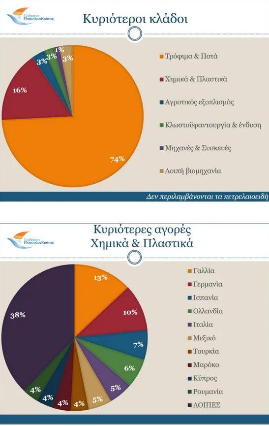 Τέλος, ο κλάδος της βιομηχανίας έχει αποδείξει ότι αποτελεί μία σταθερά για τις κρητικές εξαγωγές, αλλά θα πρέπει να ενισχυθεί περαιτέρω για την ομαλή εξέλιξη των εξαγωγών μας και την αποφυγή των τεράστιων σκαμπανεβασμάτων που παρατηρούνται και σχετίζονται με την παραγωγή του ελαιολάδου.