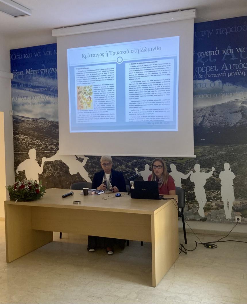 Η Γραμματέας της Αποκεντρωμένης Διοίκησης, Μαρία Κοζυράκη, συμμετείχε στην εκδήλωση με ομιλία που αφορούσε στη διαδικασία κήρυξης του αιωνόβιου κράταιγου (Crataegus monogyna) στον αρχαιολογικό χώρο της Ζωμίνθου στον ορεινό όγκο του Ψηλορείτη ως «Διατηρητέο Μνημείο της Φύσης», με απόφαση Γενικού Γραμματέα Αποκεντρωμένης Διοίκησης το 2012, καθώς και για τις συνέργειες που απαιτήθηκαν και τις προοπτικές που δημιουργούνται για την τοπική κοινωνία και τον τουρισμό υπαίθρου.