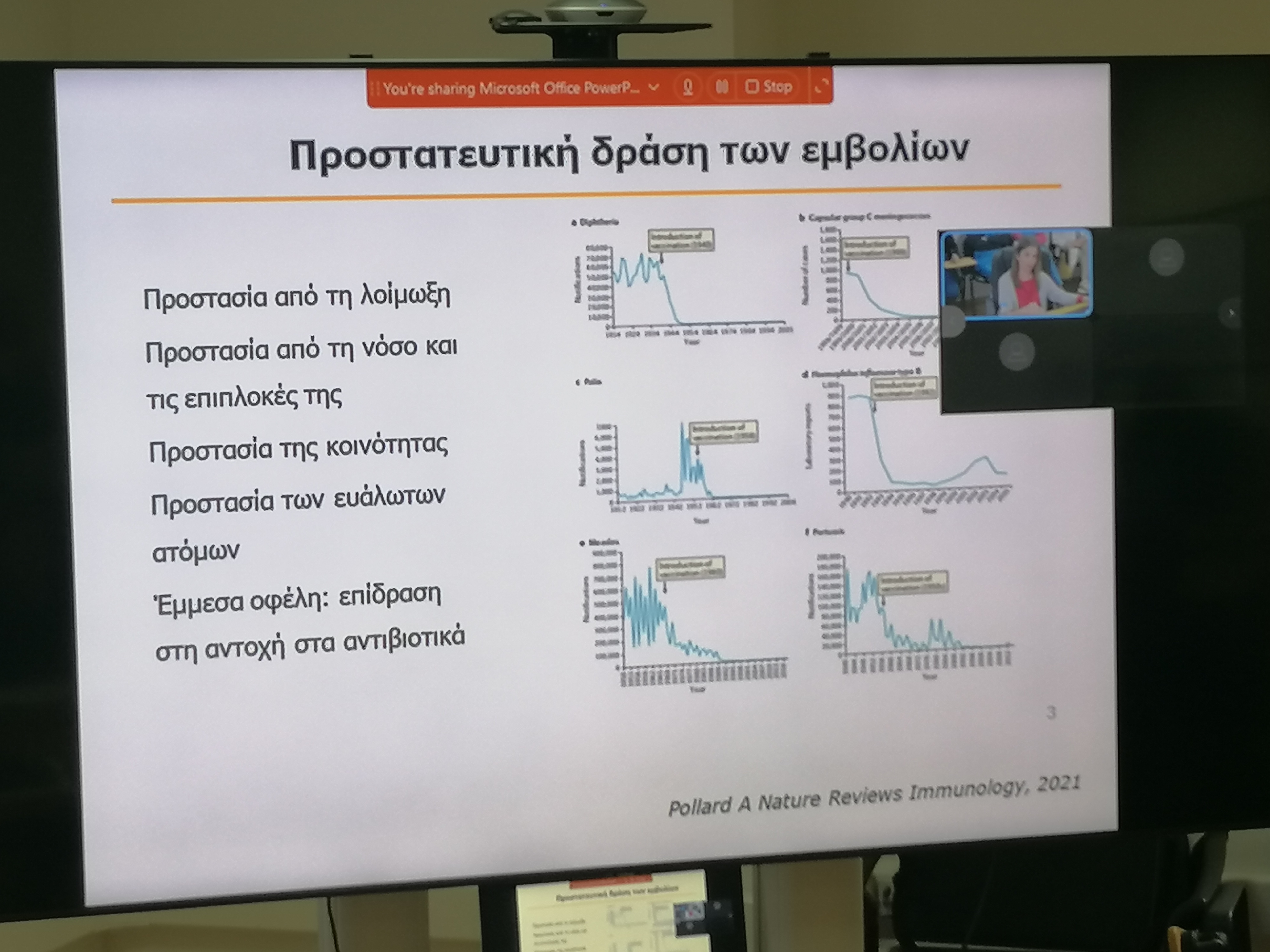 Σύμφωνα με όσα επισημάνθηκαν, τα εμβόλια είναι ένα δυνατό ‘όπλο’ που προσφέρεται για τη φροντίδα της υγείας όλων όσων εργάζονται σε μονάδες υγείας, ανεξάρτητα της ειδικότητας τους, για την πρόληψη των λοιμώξεων και νοσημάτων που οφείλονται σε βιολογικούς παράγοντες, λόγω της αυξημένης συχνά έκθεσης τους σε αυτούς.