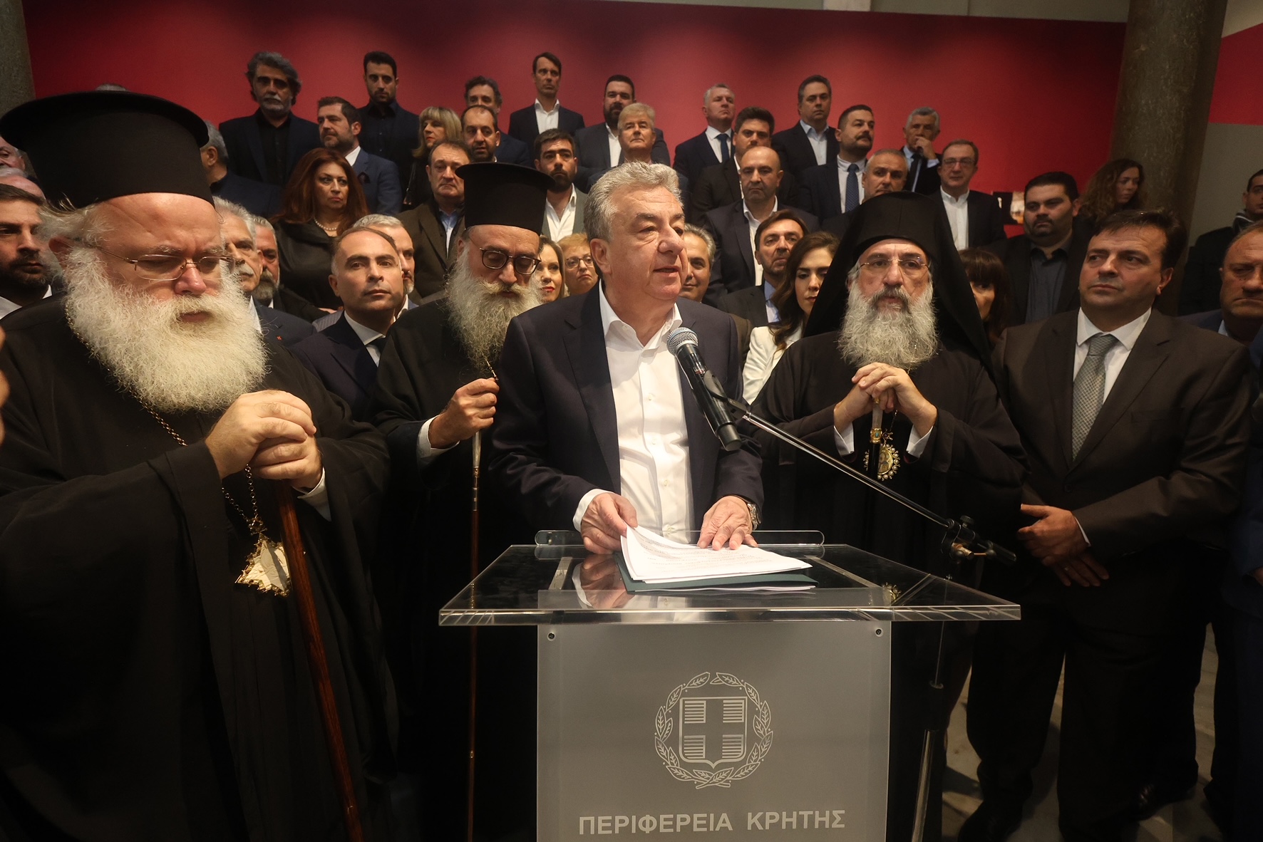 Η τελετή ορκωμοσίας του Περιφερειάρχη Κρήτης και των μελών του νέου Περιφερειακού Συμβουλίου, πραγματοποιήθηκε στην κατάμεστη Βασιλική του Αγίου Μάρκου στο Ηράκλειο.