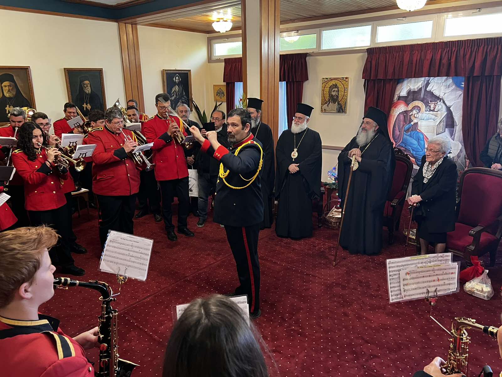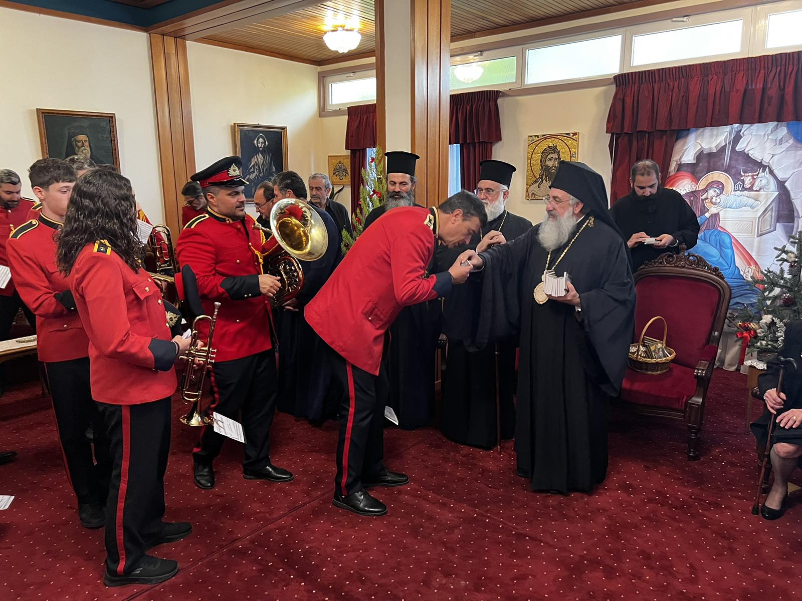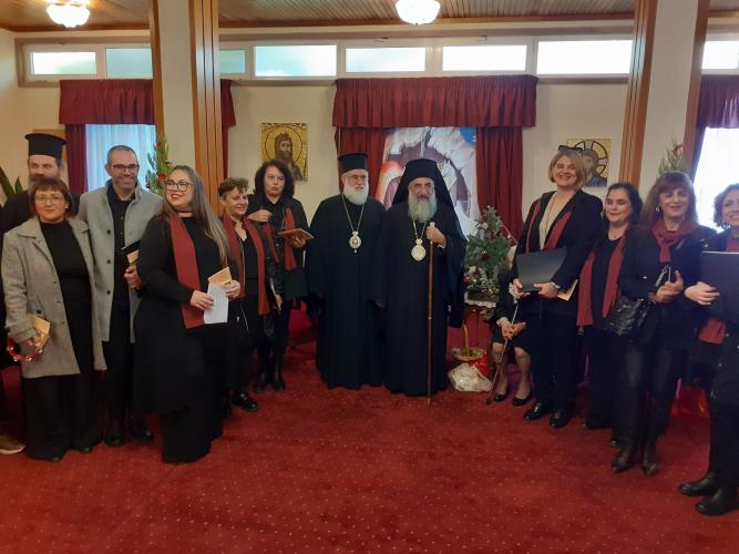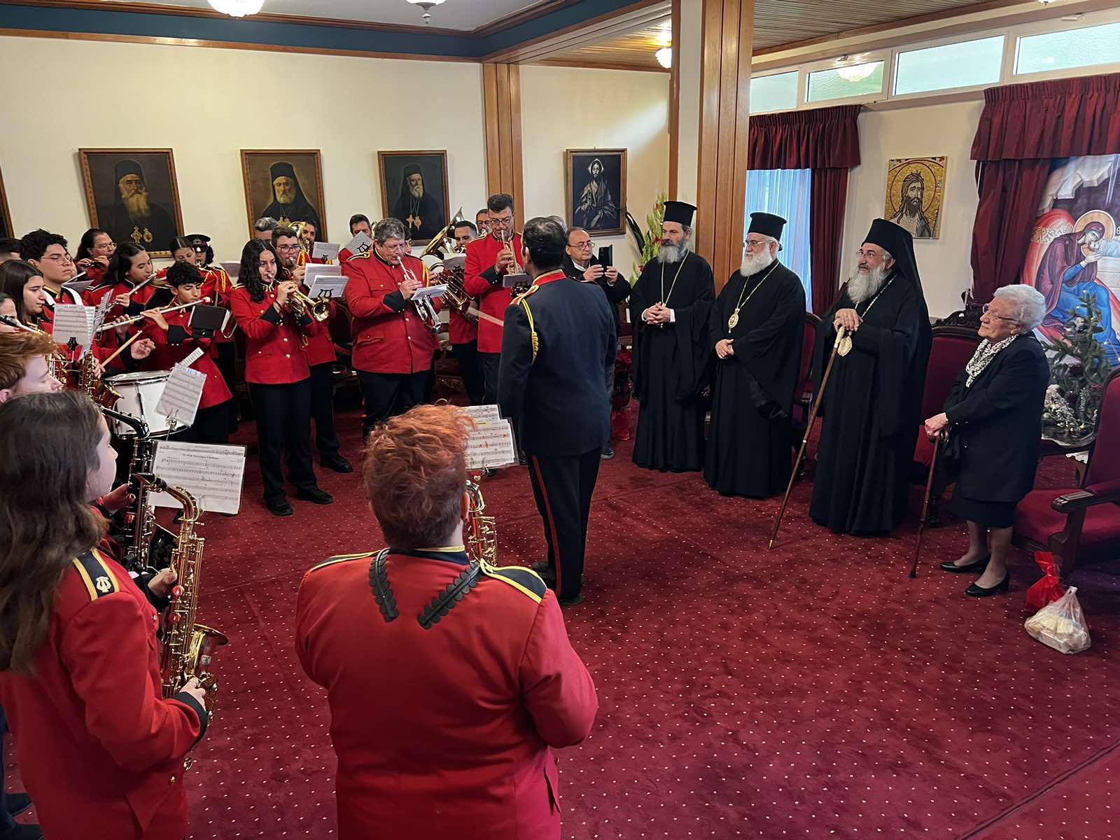 Τα κάλαντα έψαλλαν στον Σεβασμιώτατο Αρχιεπίσκοπο Κρήτης : η Φιλαρμονική του Δήμου Ηρακλείου, η χορωδία της Σχολής Εφέδρων Αξιωματικών ( ΣΕΑΠ ) Ηρακλείου και η χορωδία « Παραδοσιακό Εργαστήρι Χορού ».