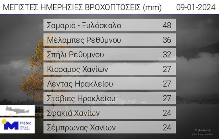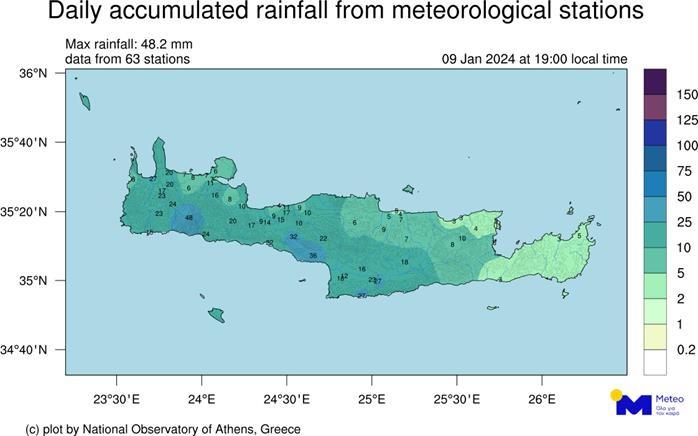 Σημαντικές βροχοπτώσεις σημειώθηκαν σήμερα Τρίτη στην Κρήτη, σύμφωνα με τον Διευθυντή Ερευνών στο Εθνικού Αστεροσκοπείου Αθηνών, κ. Κώστα Λαγουβάρδο
