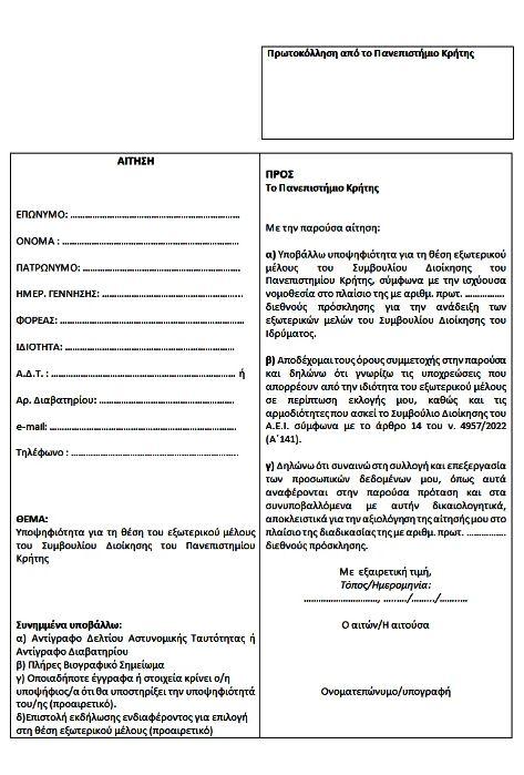 Δείτε την αίτηση που καλούνται να συμπληρώσουν όσοι ενδιαφέρονται για την εκλογή τους ως εξωτερικά μέλη στο 5μελές Συμβούλιο Διοίκησης: