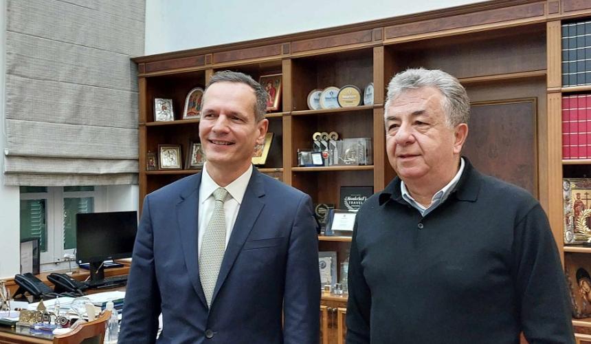 Στο πλαίσιο της περιοδείας του, συναντήθηκε σήμερα με τον Περιφερειάρχη Κρήτης, Σταύρο Αρναουτάκη. Όπως ανακοίνωσε ο κ. Μανουσάκης, το καλοκαίρι του 2025 αναμένεται να τεθεί σε λειτουργία το μεγάλο έργο της ηλεκτρικής διασύνδεσης Κρήτης - Αττικής.