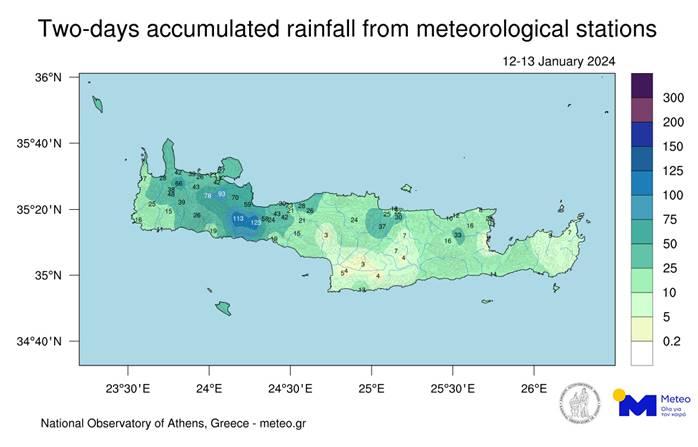 "Όπως είχαμε ενημερώσει εγκαίρως, σημαντικές βροχοπτώσεις σημειώθηκαν στην Κρήτη το διήμερο Παρασκευής-Σαββάτου ( 12-13/01).