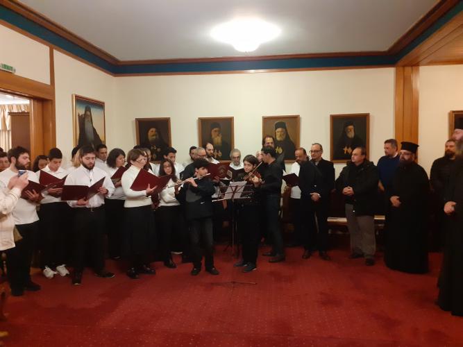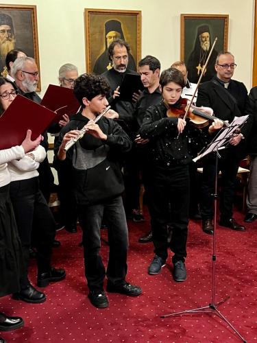 Πριν την επίδοση των αποφοιτηρίων, η Χορωδία της Σχολής Βυζαντινής Μουσικής της Ιεράς Αρχιεπισκοπής Κρήτης απέδωσε επίκαιρους ύμνους υπό τη διεύθυνση του κ. Σταύρου Μαζωνάκη.