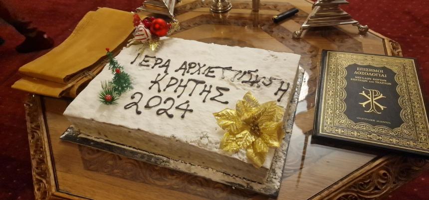 Την καθιερωμένη Βασιλόπιτα ευλόγησε και έκοψε στην Ιερά Αρχιεπισκοπή Κρήτης ο Σεβασμιώτατος Αρχιεπίσκοπος Κρήτης κ.κ. Ευγένιος.