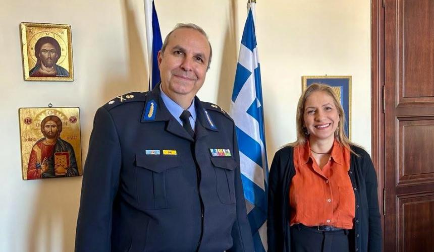 Με τον νέο Περιφερειακό Διευθυντή Πυροσβεστικών Υπηρεσιών Κρήτης, αρχιπύραρχο Μιχάλη Σεληνιωτάκη συναντήθηκε στα γραφεία της Αποκεντρωμένης Διοίκησης στο Ηράκλειο η Γραμματέας Μαρία Κοζυράκη.