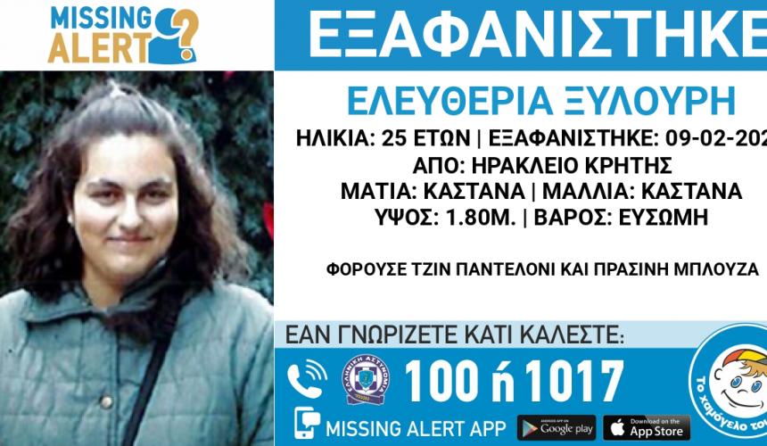 Στις 9/02/2024, απογευματινές ώρες, εξαφανίστηκε από την περιοχή του Ηρακλείου Κρήτης, η Ελευθερία Ξυλούρη, 25 ετών.