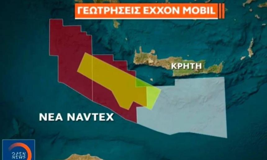 Η περιοχή δεσμεύτηκε με νέα NAVTEX για γεωτρήσεις από την Exxon Mobil για τον εντοπισμό συγκεκριμένων σημείων.
