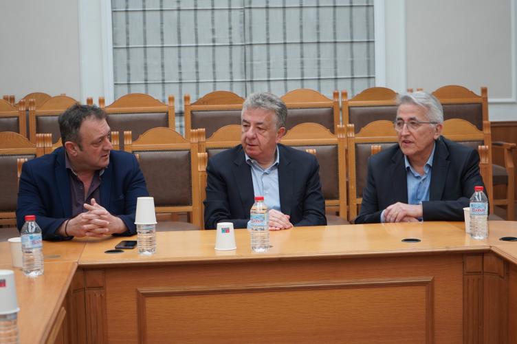 Στο πλαίσιο της επίσκεψης πραγματοποιήθηκε συνάντηση με τον Περιφερειάρχη Κρήτης Σταύρο Αρναουτάκη στην αίθουσα του Περιφερειακού Συμβουλίου. Έγινε ενημέρωση για την περιοδεία και τα αιτήματα της Συνομοσπονδίας ενόψει της απεργιακής κινητοποίησης που έχει προκηρύξει για τις 17 Απριλίου, αλλά και για την πρωτοβουλία ενημέρωσης των εργαζομένων και των πολιτών για τις επιπτώσεις της ακρίβειας.