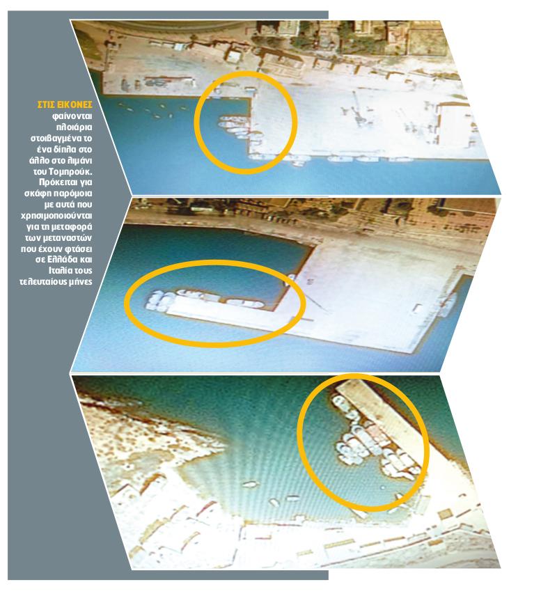 Στις φωτογραφίες των λιμενικών εγκαταστάσεων του Τομπρούκ είναι φανερές όλες οι φάσεις των προετοιμασιών που γίνονται για τον απόπλου των παράνομων μεταναστών με προορισμό την Ευρώπη. Οι εικόνες έχουν ληφθεί μέσα σε ένα διάστημα έξι ημερών, από τις 23 έως τις 28 Φεβρουαρίου.