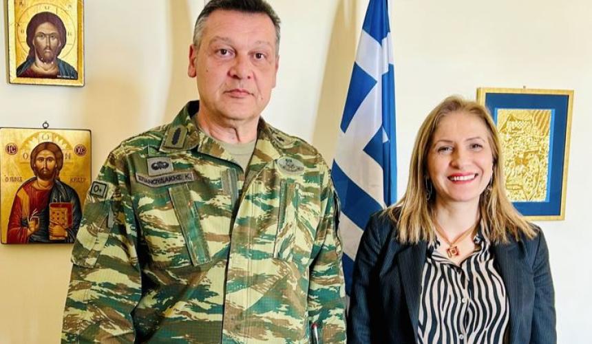 Με τον νέο Διοικητή της Σχολής Εφέδρων Αξιωματικών Πεζικού, ταξίαρχο Κωνσταντίνο Σπανουδάκη συναντήθηκε σήμερα στα γραφεία της Αποκεντρωμένης Διοίκησης Κρήτης στο Ηράκλειο η Γραμματέας Μαρία Κοζυράκη.