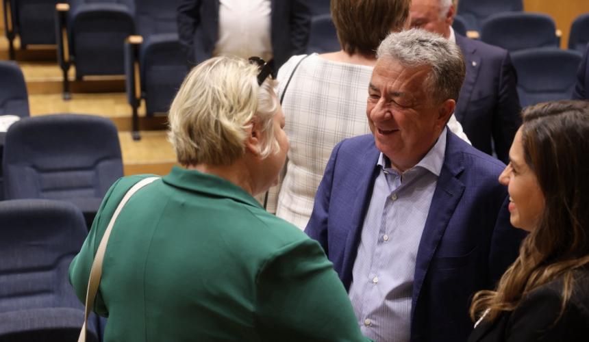 Χαιρετίζοντας την εκδήλωση υποδοχής που έγινε στο Επιμελητήριο Ηρακλείου ο Περιφερειάρχης Κρήτης αναφέρθηκε στην μακραίωνη πολιτιστική ιστορία της Κρήτης η οποία αναδεικνύει τον ρόλο του νησιού, υπογράμμισε πως στη σημερινή εποχή αποτελεί κορυφαίο προορισμό στη Μεσόγειο, σημειώνοντας πως η Κρήτη πορεύεται στο 2030 επενδύοντας στα ισχυρά συγκριτικά της πλεονεκτήματα στον πρωτογενή τομέα και στον τουρισμό, ενώ διαθέτει σημαντικές επιστημονικές υποδομές, όπως τα Πανεπιστήμια, το Πολυτεχνείο, το ΙΤΕ, που την κατέστησαν πρωτοπόρα στην επιστήμη. Παράλληλα, ο Σταύρος Αρναουτάκης αναφέρθηκε στο πλούσιο και πολυποίκιλο φυσικό περιβάλλον της Κρήτης το οποίο σε συνδυασμό με το πολιτιστικό και πολιτισμικό της απόθεμα, την καθιστά ελκυστική ενώ η κρητική διατροφή έχει αναδείξει και κατοχυρώσει το νησί στον αγροτοδιατροφικό τομέα.