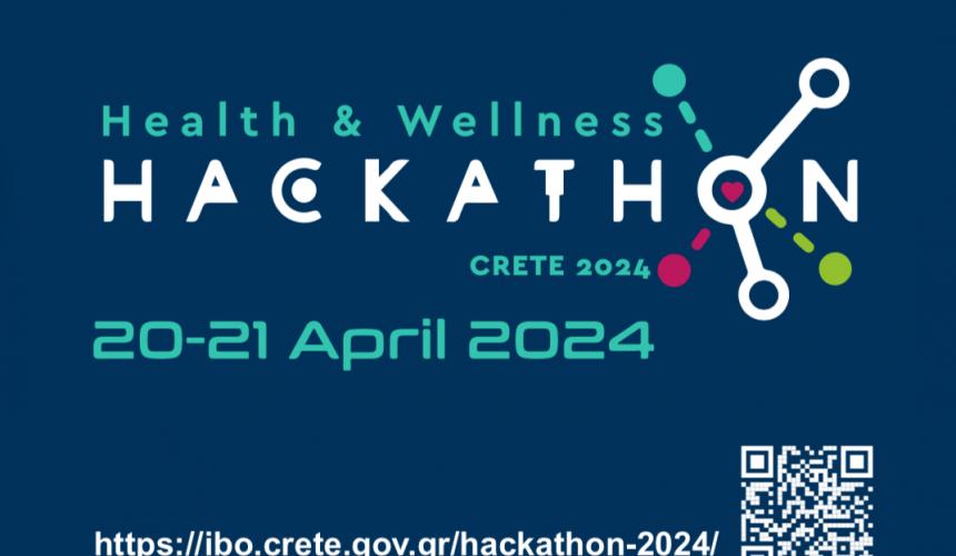 Ανακοινώνουμε την πραγματοποίηση του Διαγωνισμού Καινοτομίας «Hackathon for Health and Wellness Crete 2024», στις 20 και 21 Απριλίου 2024, παράλληλα στο Ηράκλειο και στην Αθήνα.