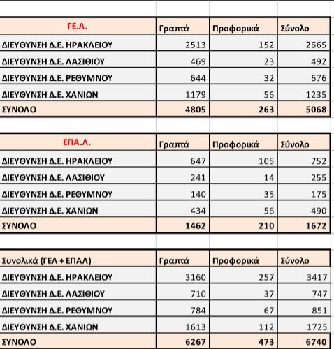 Σε επίπεδο Κρήτης, οι υποψήφιοι είναι 6.740 και καταμερίζονται ως εξής:
