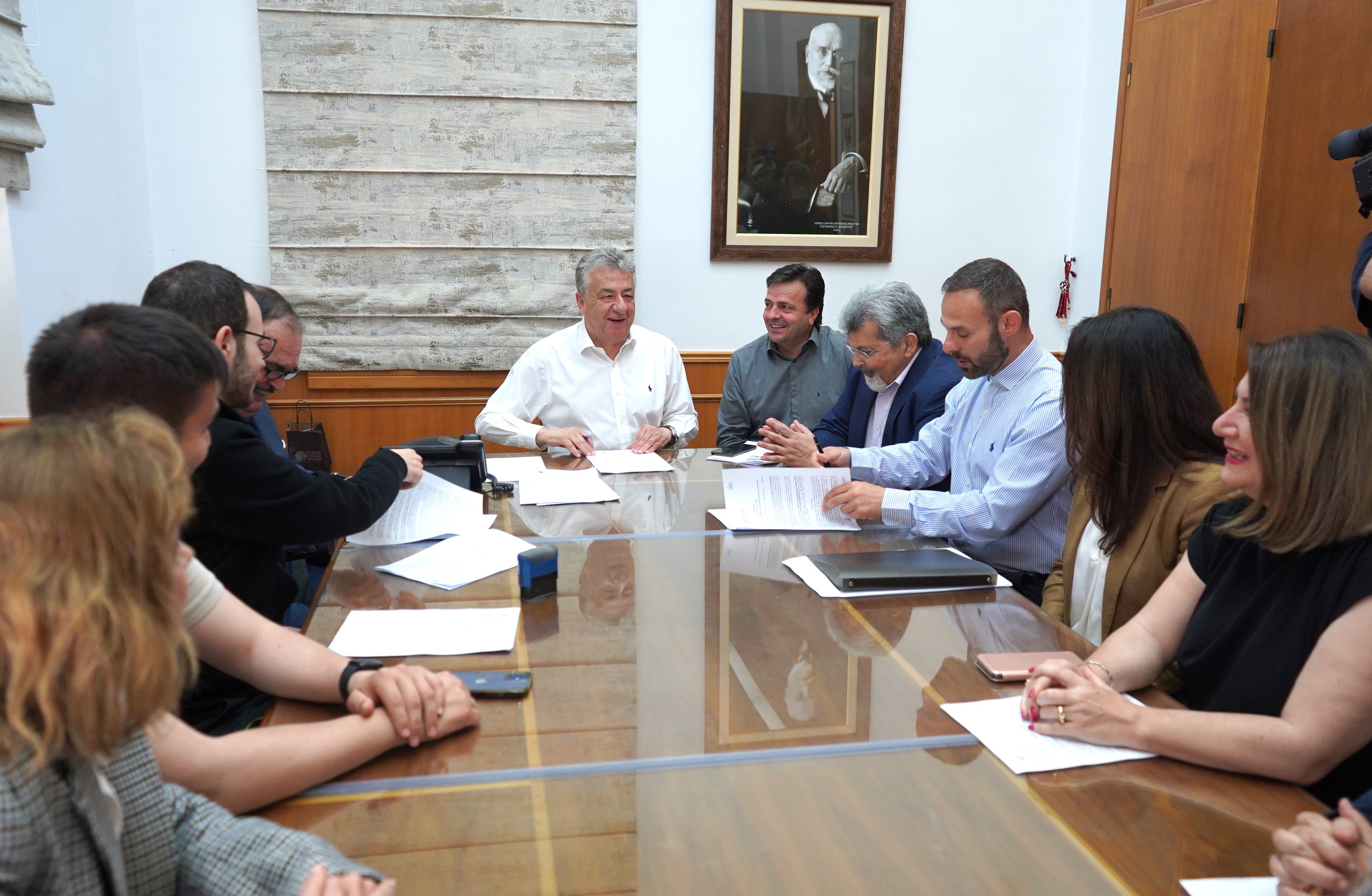 Στην σημερινή υπογραφή της σύμβασης από τον Περιφερειάρχη Κρήτης Σταύρο Αρναουτάκη και τον Διευθυντή και Πρόεδρο του δ.σ. του ΕΛΚΕΘΕ Δρ. Αντώνη Μαγουλά παραβρέθηκαν: ο αναπληρωτής Περιφερειάρχη Γιώργος Πιτσούλης, ο Αντιπεριφερειάρχης Ηρακλείου Νίκος Συριγωνάκης, ο διευθυντής του ΙΘΑΒΒΥΚ Δρ. Κώστας Μυλωνάς, ο εκπρόσωπος του ΤΑΙΠΕΔ υπεύθυνος του έργου Βασίλης Κυριακόπουλος, η Διευθύντρια τεχνικών υπηρεσιών Π.Ε Ηρακλείου Χαρά Τριαματάκη, η Τμ. Δομών Περιβάλλοντος Δ.Τ.Ε.Π.Ε.Η. Άννα Ροβίθη, η μηχανολόγος-μηχανικός του ΕΛΚΕΘΕ Μαρίνα Λεοντίδη, η διευθύντρια διοικητικών-οικονομικών υπηρεσιών ΕΛΚΕΘΕ Μαρία Στεφανάκη, ο εκπρόσωπος της κατασκευαστικής εταιρείας «ΓΑΜΑ ΣΙΓΜΑ ΚΑΤΑΣΚΕΥΑΣΤΙΚΗ ΑΤΕ» Γιώργος Σμπώκος.