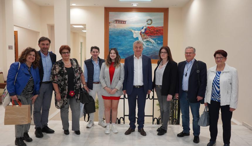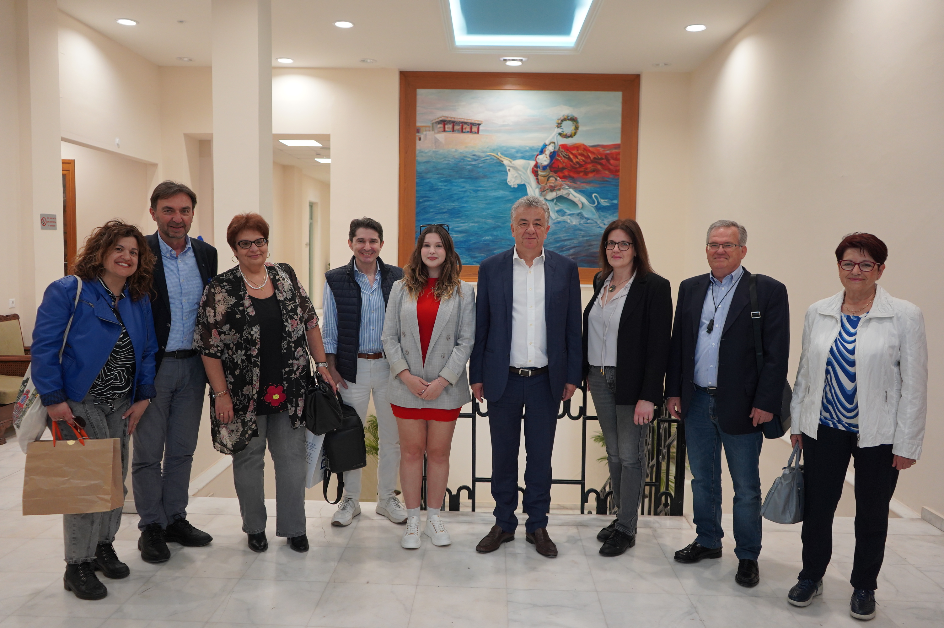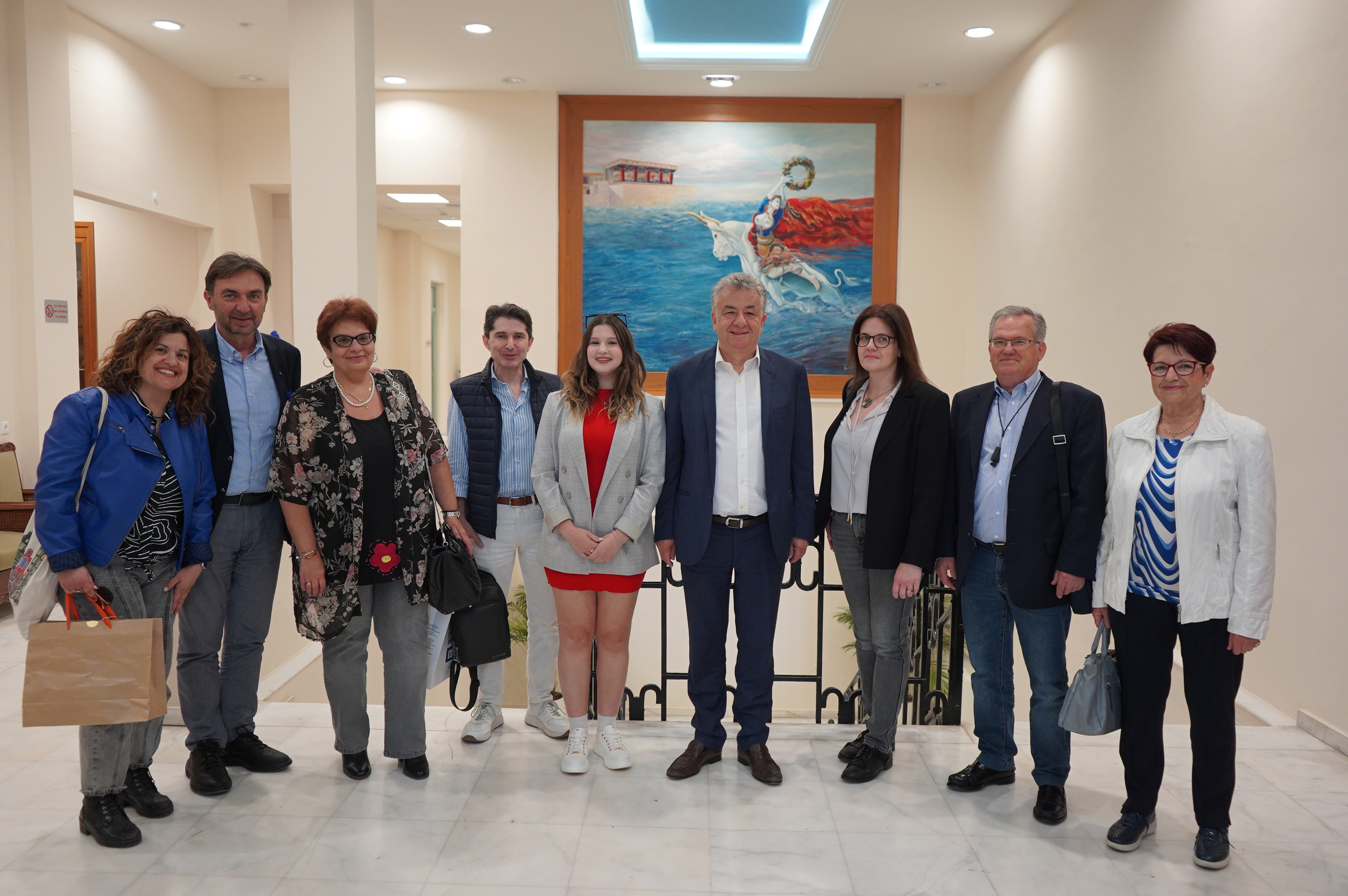 Στη συνάντηση παραβρέθηκαν ο Εντεταλμένος Περιφερειακός Σύμβουλος Ευρωπαϊκών και Διεθνών Σχέσεων Γιώργος Αλεξάκης, η Πρόεδρος του Συλλόγου Γονέων Ελευθερία Νιργιανάκη, η Διευθύντρια του 5ου Γενικού Λυκείου Ηρακλείου Μαρία Δρακωνάκη, η καθηγήτρια Αγγλικής Φιλολογίας Ελένη Δασκαλογιαννάκη που ήταν υπεύθυνη του προγράμματος και συγγενείς της μαθήτριας.