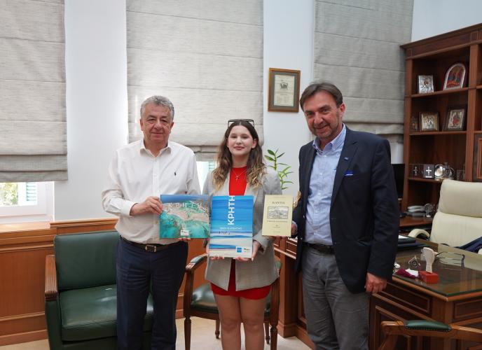 Τον Περιφερειάρχη Κρήτης Σταύρο Αρναουτάκη επισκέφθηκε σήμερα η μαθήτρια του 5ου Γενικού Λυκείου Ηρακλείου Άννα Παναγιωτάκη, νικήτρια του ευρωπαϊκού διαγωνισμού «Juvenes Translatores» που διοργανώνεται με πρωτοβουλία της Γενικής Διεύθυνσης Μετάφρασης της Ευρωπαϊκής Επιτροπής από το 2007 και απευθύνεται σε μαθητές και μαθήτριες Δευτεροβάθμιας Εκπαίδευσης από τις χώρες της Ευρωπαϊκής Ένωσης.