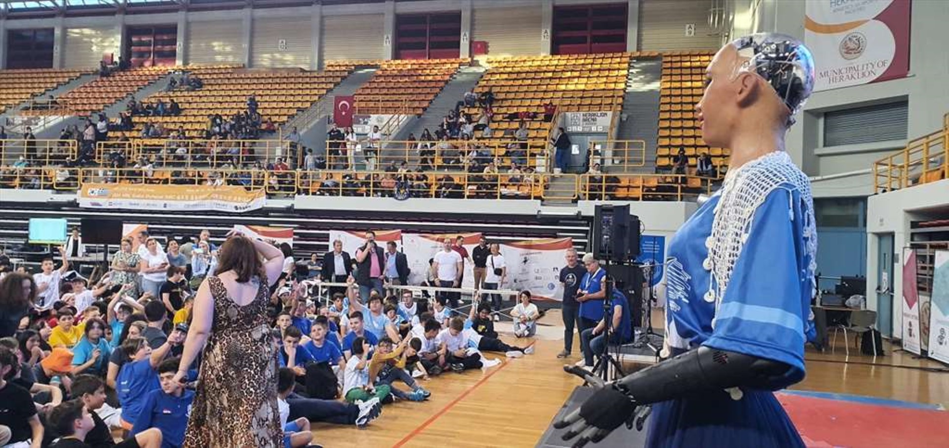 Το ρομπότ Sophia βρέθηκε στον χώρο διεξαγωγής της 3ης Ολυμπιάδας Ρομποτικής MRC GLOBAL OLYMPIAD (Minoan Robotsports Competition Global Olympiad) το απόγευμα της Κυριακής και κέρδισε τις εντυπώσεις!