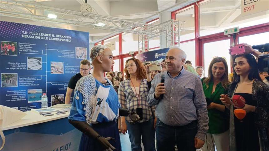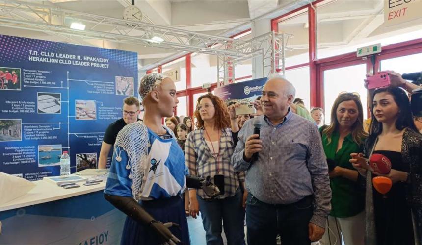 Μικροί και μεγάλοι έσπευσαν να δουν από κοντά το ανθρωπόμορφο ρομπότ και να του κάνουν ερωτήσεις. Η Sophia, που μπορεί να μιμηθεί την ανθρώπινη συμπεριφορά, απάντησε ευγενικά στο καλωσόρισμα των διοργανωτών και στη συνέχεια απάντησε σε ερωτήσεις εκπροσώπων των τοπικών φορέων, των δημοσιογράφων, αλλά και του απλού κόσμου.