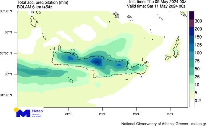 Σύμφωνα με τον Διευθυντή Ερευνών στο Εθνικό Αστεροσκοπείο Αθηνών, Κώστα Λαγουβάρδο "Σημαντικές βροχές αναμένονται στην Κρήτη την Παρασκευή 09/05 και μέχρι τις πρωινές ώρες του Σαββάτου 11/05".