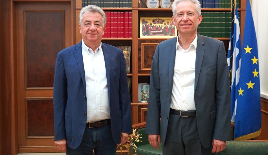 Οι κ.κ. Χρυσόγονος και Αρναουτάκης συζήτησαν θέματα αναπτυξιακά και τα χρηματοδοτικά «εργαλεία» που αξιοποιεί η Κρήτη από πόρους της Ευρώπης για την ενίσχυση των υποδομών του νησιού, της οικονομίας, της υγείας αλλά και της εκπαίδευσης-έρευνας ευρύτερα.