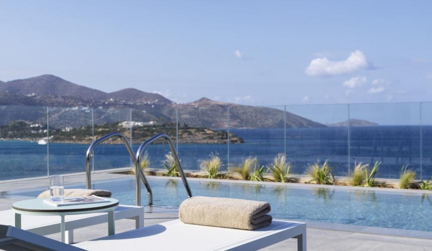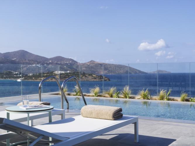 Το Minoan, που βρίσκεται στο εντυπωσιακό roof του ξενοδοχείου με θέα στον κόλπο του Μιραμπέλου, προσφέρει την απόλυτη εμπειρία δίπλα στην πισίνα, επιτρέποντας στους επισκέπτες να χαλαρώσουν και να απολαύσουν την απρόσκοπτη θέα. Τέλος, οι λάτρεις των cocktails θα βρουν τον δικό τους παράδεισο στα bars του ξενοδοχείου, υπό την καθοδήγηση του αναγνωρισμένου πέραν των ελληνικών συνόρων, Bar Consultant, Ηλία Στεργιόπουλου, ο οποίος με 17 χρόνια πορείας στον χώρο της εστίασης, έχει συνεργαστεί με κάποια από τα πιο δημοφιλή bars της Ελλάδας.