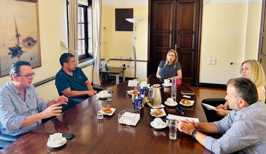 Προγραμματισμένη συνάντηση με τη Γραμματέα της Αποκεντρωμένης Διοίκησης Κρήτης, Μαρία Κοζυράκη, είχαν σήμερα ο Πρόεδρος του Δικτύου Οινοποιών Κρήτης Νίκος Μηλιαράκης, τα μέλη του διοικητικού συμβουλίου Απόστολος Αλεξάκης και Νίκος Δουλουφάκης, και η Επιχειρησιακή