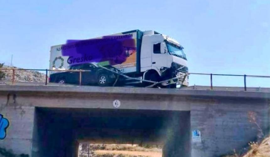 Ειδικότερα, ένα φορτηγό συγκρούστηκε με αγροτικό, κάτω από αδιευκρίνιστες μέχρι στιγμής συνθήκες και στη συνέχεια τα δύο οχήματα προσέκρουσαν στο προστατευτικό κιγκλίδωμα στην άκρη του δρόμου.