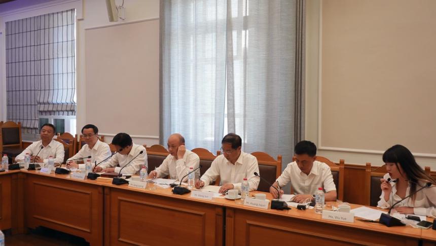 Στην αρχή της συνάντησης ο Γιώργος Αλεξάκης καλωσόρισε τους κινέζους επισκέπτες και τους μίλησε για την Κρήτη ως κοιτίδα του ευρωπαϊκού πολιτισμού και αναφέρθηκε στις σύγχρονες αναπτυξιακές προοπτικές του νησιού.