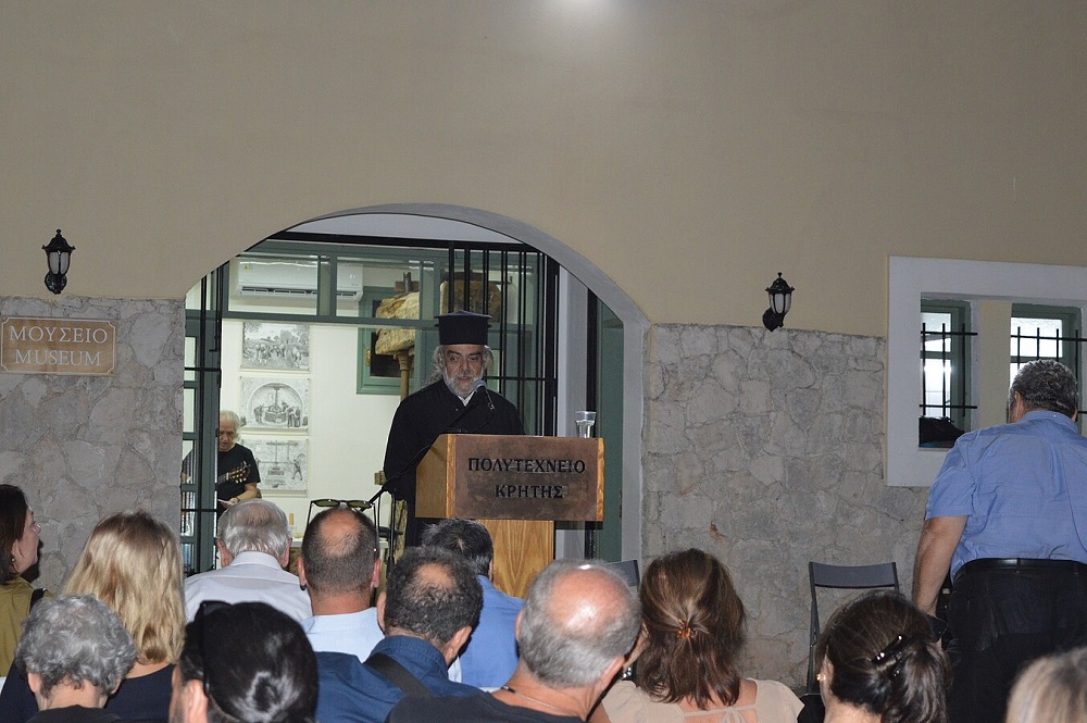 Μετά την πολύ ενδιαφέρουσα ομιλία, τον λόγο έλαβε ο π. Εμμανουήλ Μπιτζανάκης, εφημέριος της Ενορίας Προφήτη Ηλία και εκπρόσωπος του Σεβασμιωτάτου Μητροπολίτη Κυδωνίας και Αποκορώνου, ο οποίος μίλησε με πολύ θερμά λόγια για το Πολυτεχνείο Κρήτης και ειδικότερα για το Πάρκο Διάσωσης Χλωρίδας και Πανίδας.