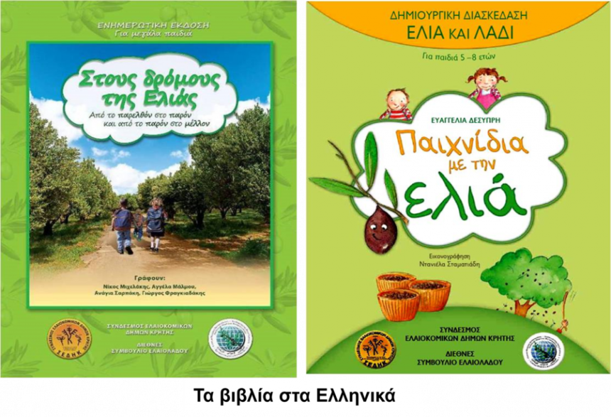 - Τα έντυπα της δεύτερης κατηγορίας που θα προoρίζονται για μεγαλύτερα παιδιά καιι ενήλικες θα έχουν τίτλους «Στους δρόμους της Ελιάς» και «On the olive routes»