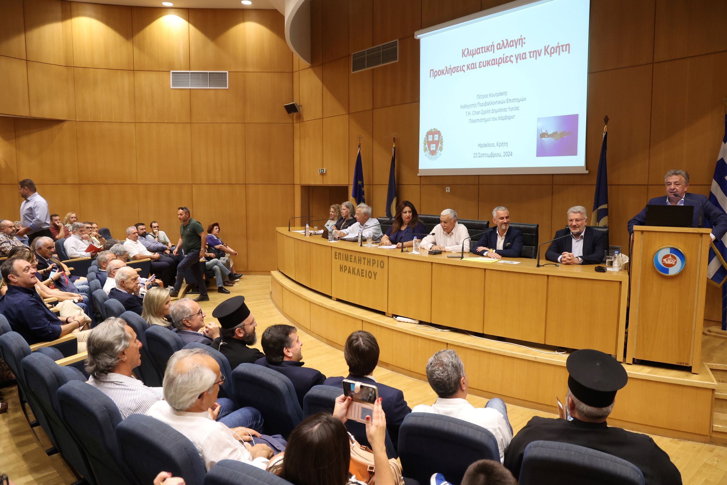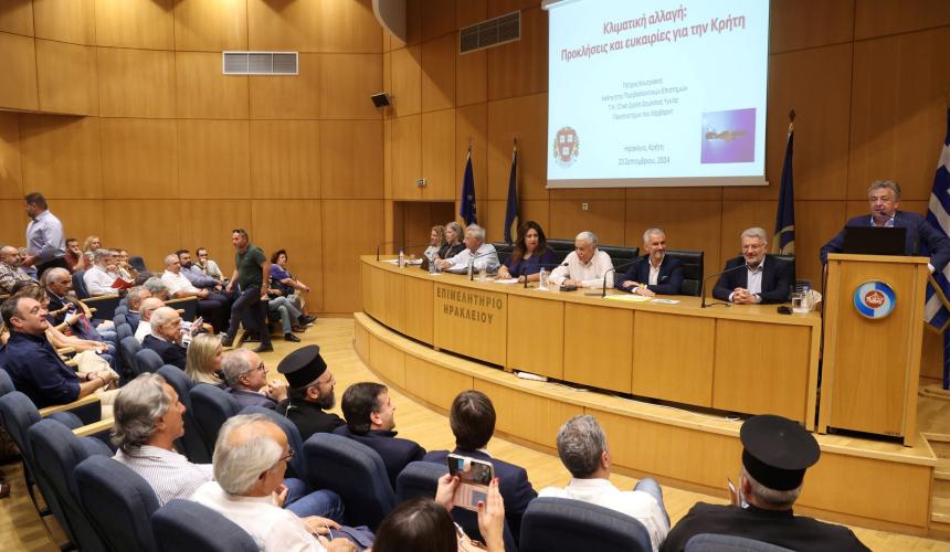 «Πρέπει να προετοιμαστούμε για το μέλλον για να ανταποκριθούμε στις συνέπειες της κλιματικής αλλαγής», ήταν το μήνυμα που έδωσε, ο Καθηγητής Περιβαλλοντικών Επιστημών & Περιβαλλοντικής Υγείας του Πανεπιστημίου του Harvard, Δρ. Πέτρος Κουτράκης ως κεντρικός ομιλητής στην εκδήλωση που οργάνωσε η Περιφέρεια Κρήτης με θέμα: «Κλιματική αλλαγή, προκλήσεις και ευκαιρίες για την Κρήτη».