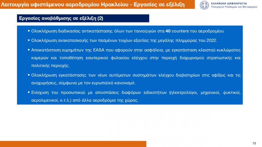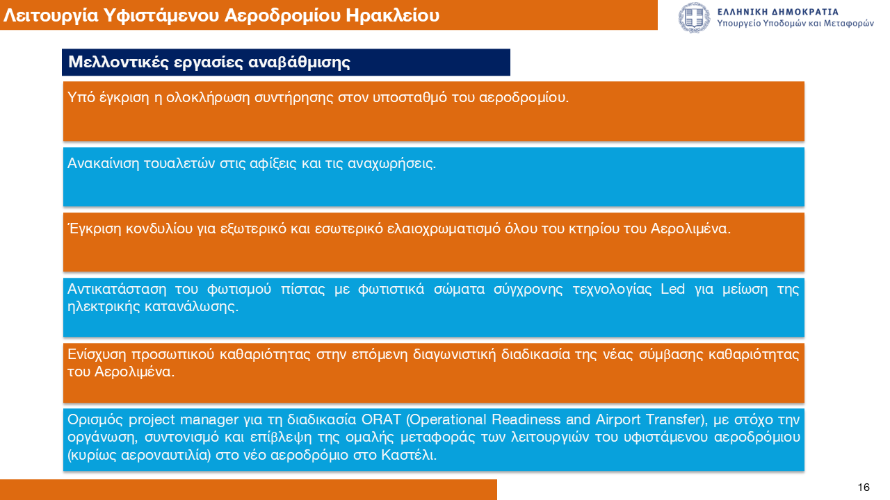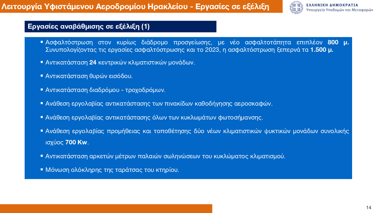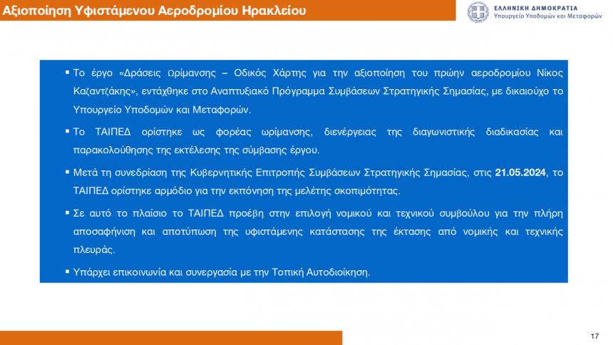 - Λειτουργία και Αξιοποίηση του Yφιστάμενου Αεροδρομίου Ηρακλείου.