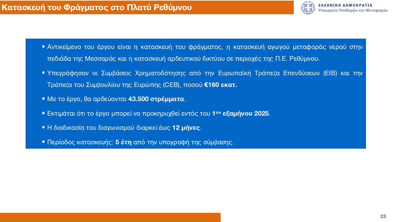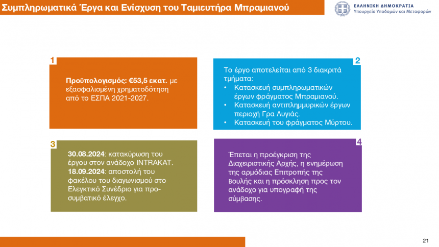 - Συμπληρωματικά Έργα και Ενίσχυση του Ταμιευτήρα Μπραμιανού.