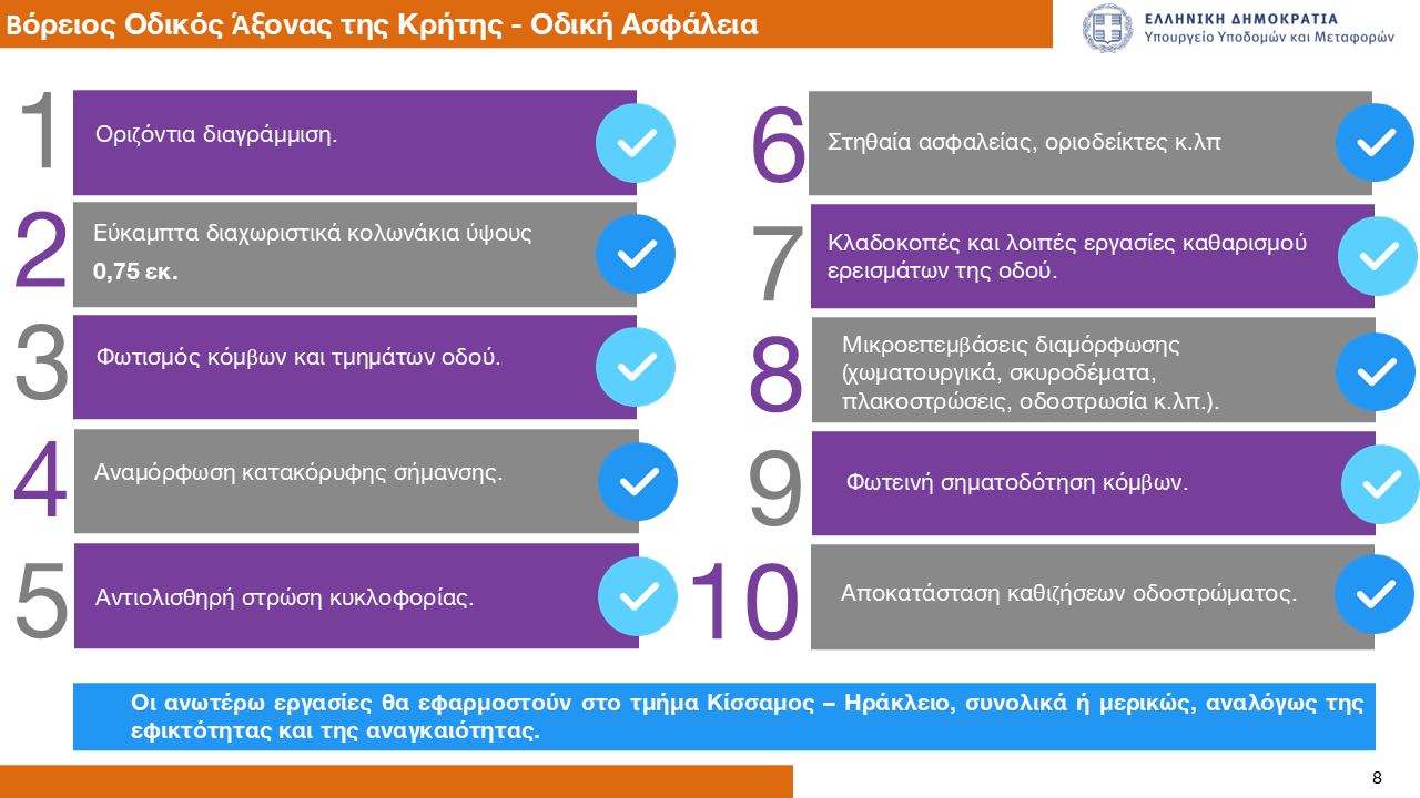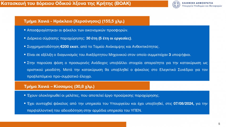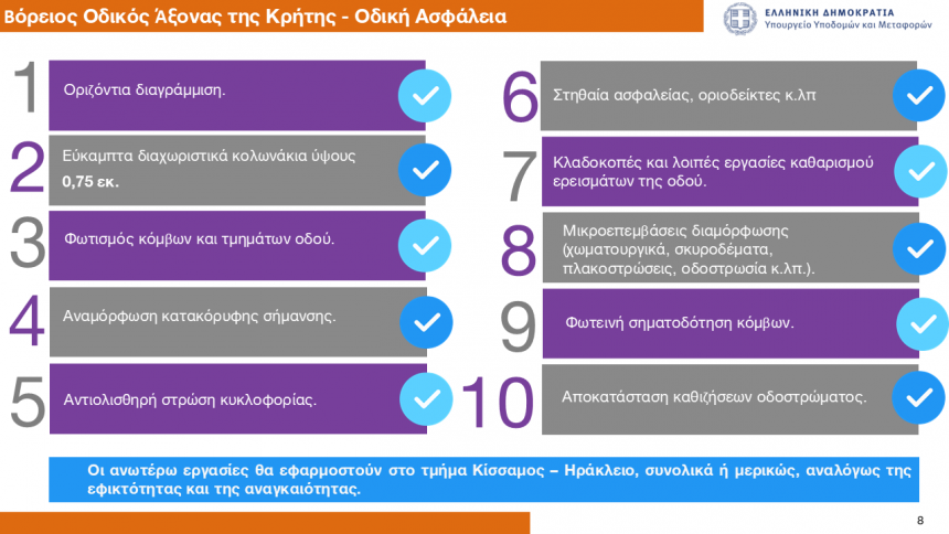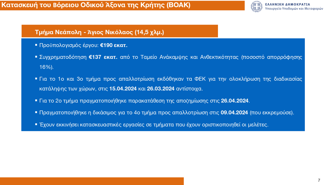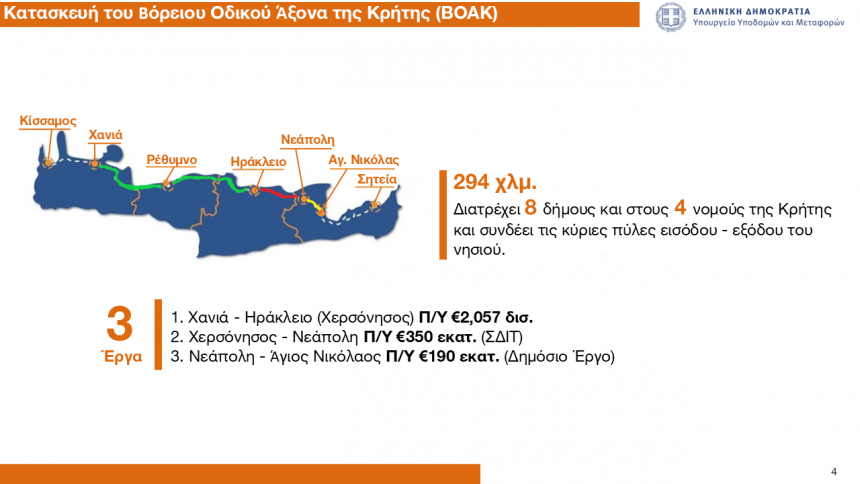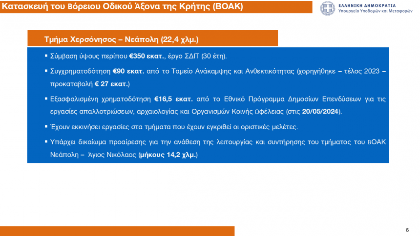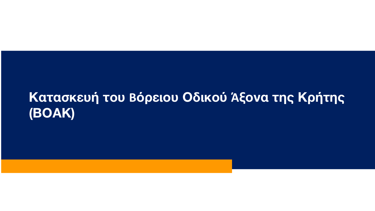 - Κατασκευή του Βόρειου Οδικού Άξονα της Κρήτης (BΟΑΚ).