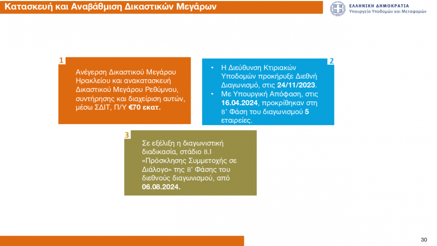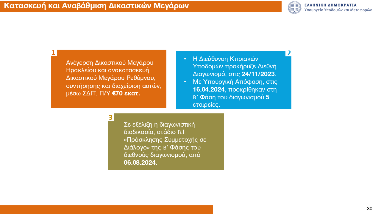 - Κατασκευή και Αναβάθμιση Δικαστικών Μεγάρων.