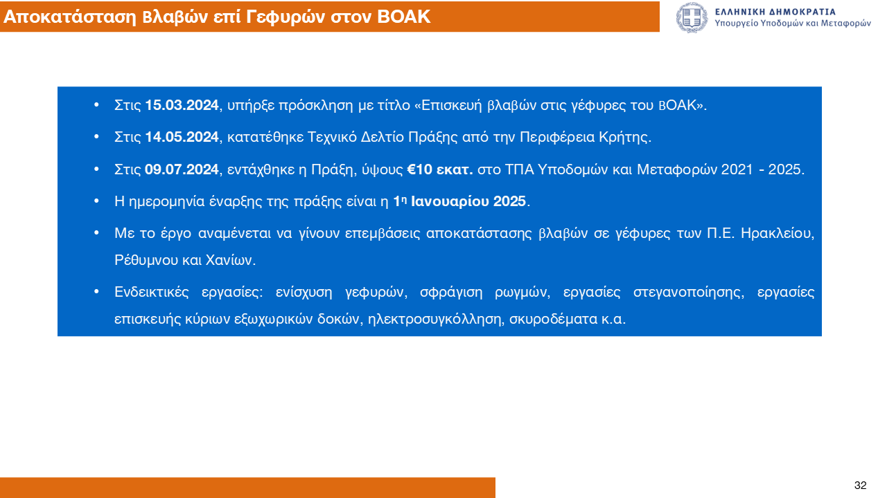 - Αποκατάσταση Βλαβών επί Γεφυρών στον BOΑΚ.