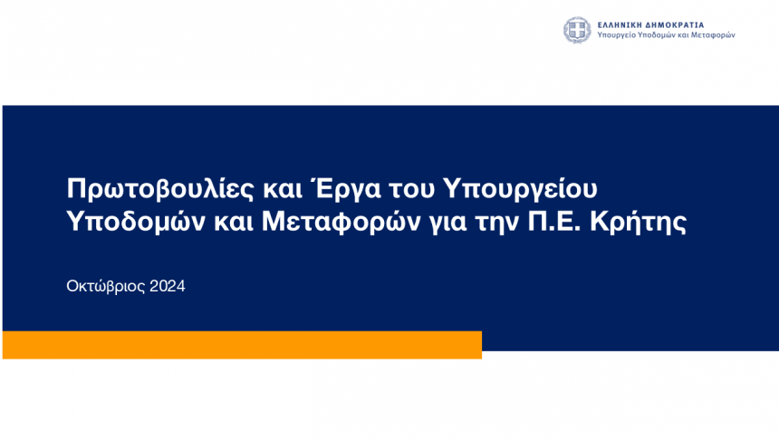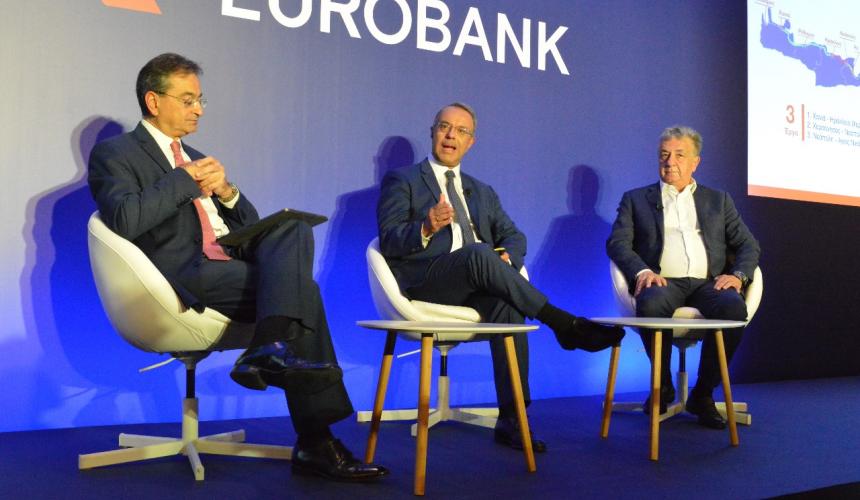 Τα έργα και τις πρωτοβουλίες που προωθεί το Υπουργείο Υποδομών και Μεταφορών, στην Κρήτη, παρουσίασε ο Υπουργός Υποδομών και Μεταφορών Χρήστος Σταϊκούρας, σε ειδική εκδήλωση με θέμα: «Η Κρήτη και τα μεγάλα έργα», που διοργάνωσε, σήμερα, η Eurobank, στο Ηράκλειο της Κρήτης.