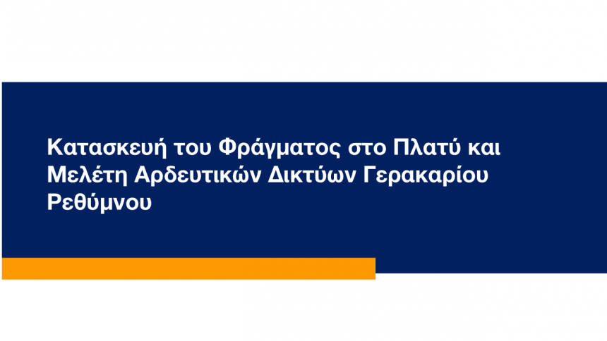 - Κατασκευή του Φράγματος στο Πλατύ και Μελέτη Αρδευτικών Δικτύων Γερακαρίου Ρεθύμνου.