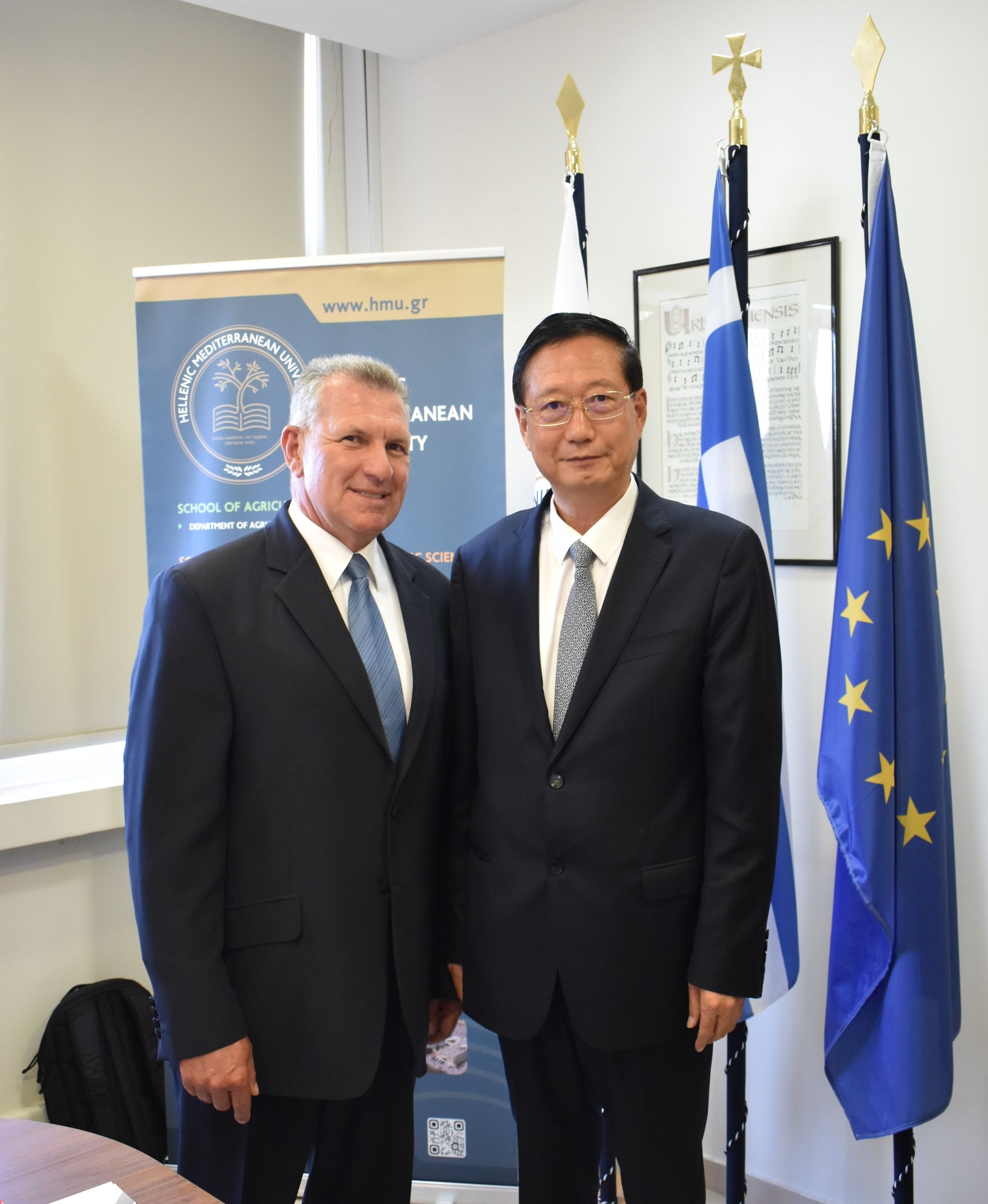 Πραγματοποιήθηκε την Τετάρτη 16 Οκτωβρίου, επίσκεψη της υψηλόβαθμης κυβερνητικής αντιπροσωπείας του Υπουργείου Διαχείρισης Εκτάκτων Αναγκών της Κίνας με επικεφαλής τον Υφυπουργό Song Yuanming στην αίθουσα συνεδριάσεων της Πρυτανείας, στο Ελληνικό Μεσογειακό Πανεπιστήμιο.